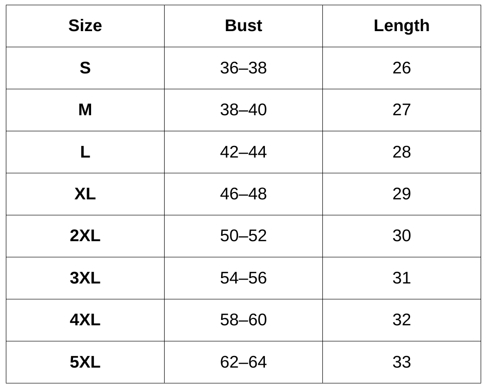 Size Chart (Inches):