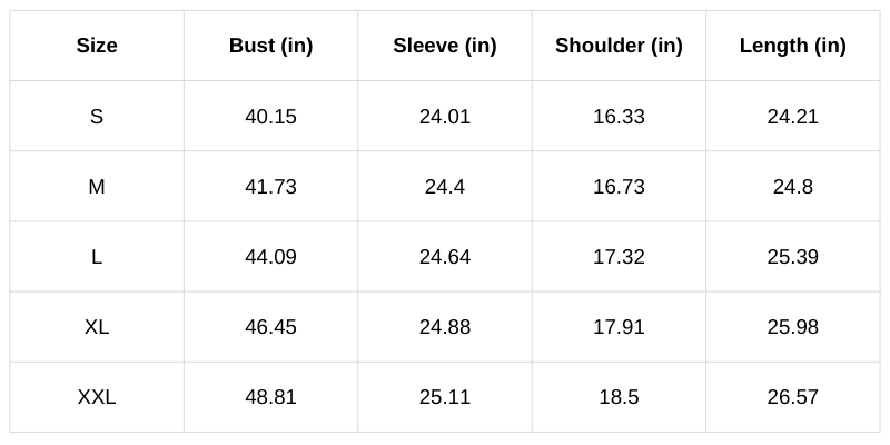 Size Chart (Inches):