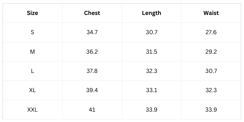 - Available Sizes: S, M, L, XL, XXL