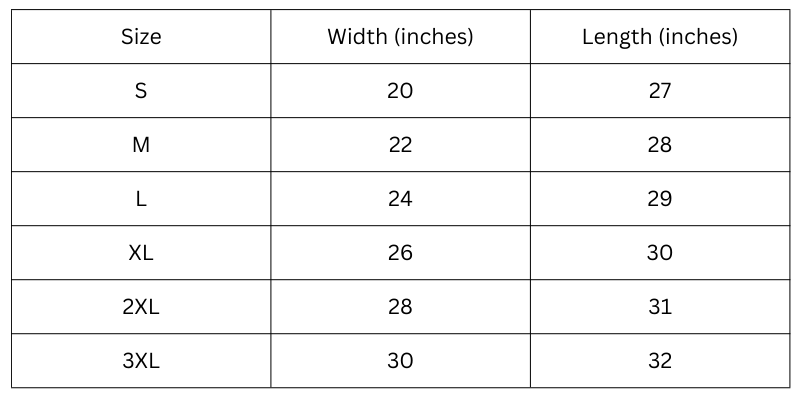 Size Chart (Inches):