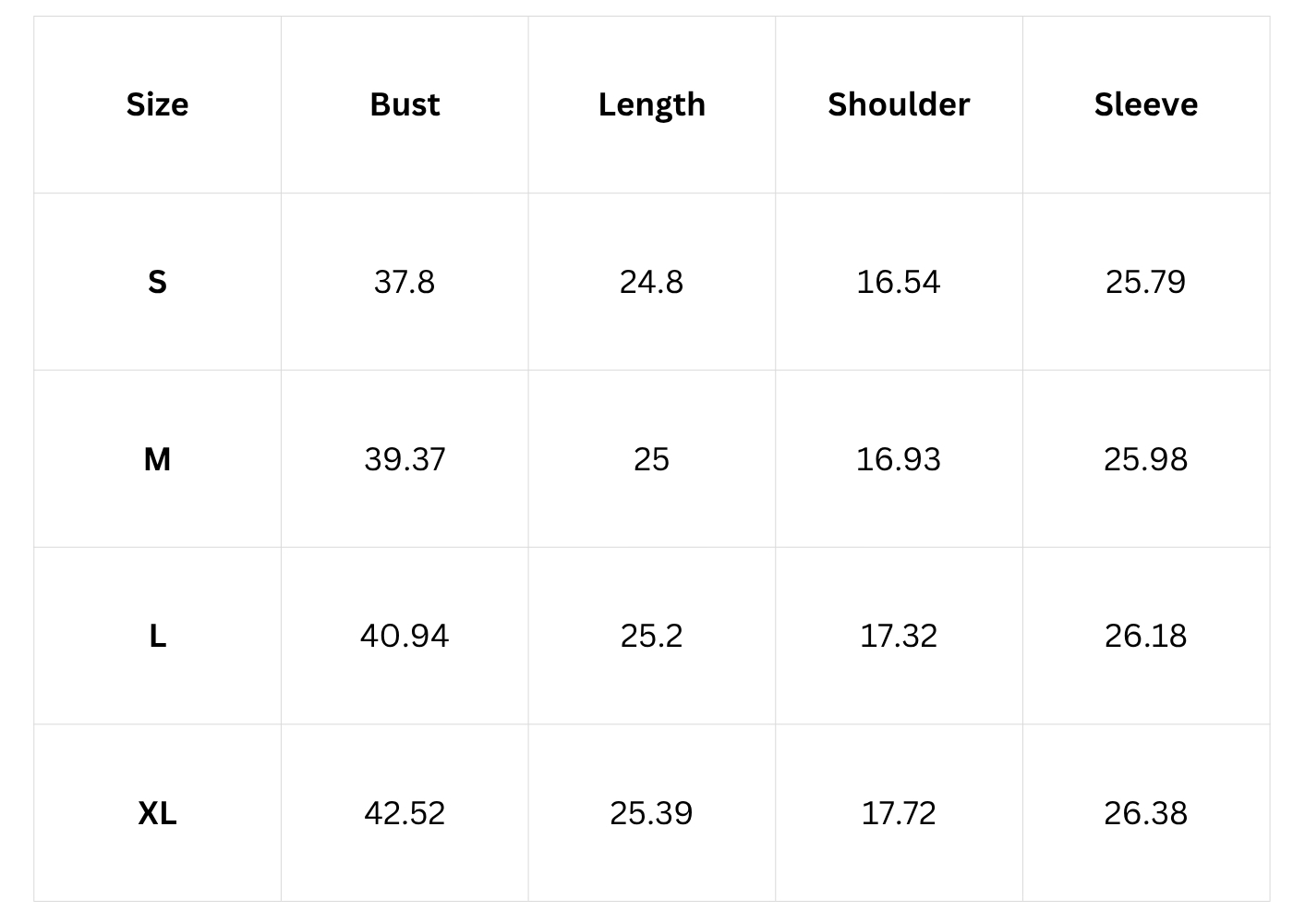 Size Chart(inch):