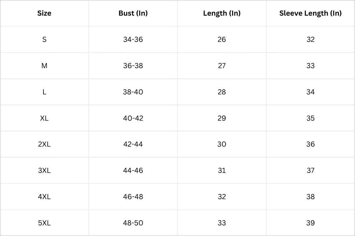 Size Chart (Inches):