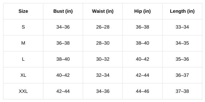 Size Chart (Inches):