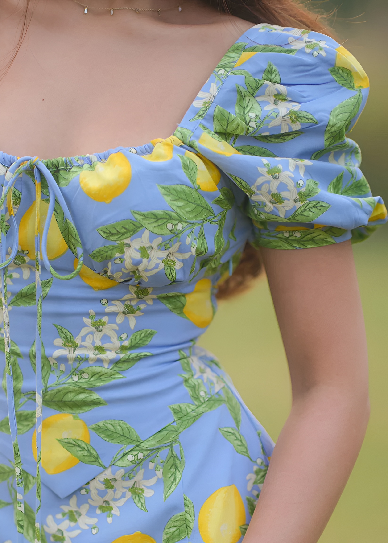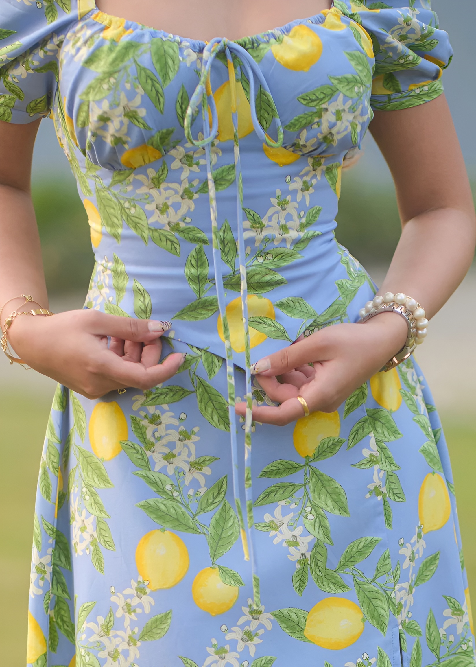 Why Choose This Lemon Printed Midi Dress With Puff Sleeve Detail For Women