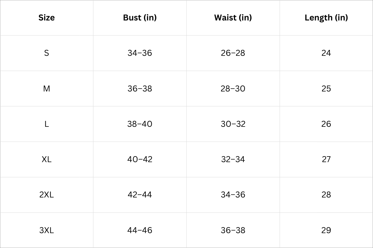 Size Chart (Inches):