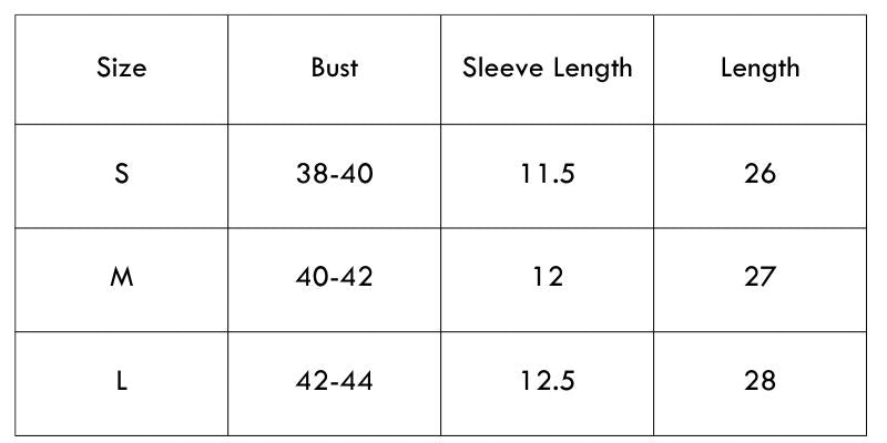 Size Chart (inches):