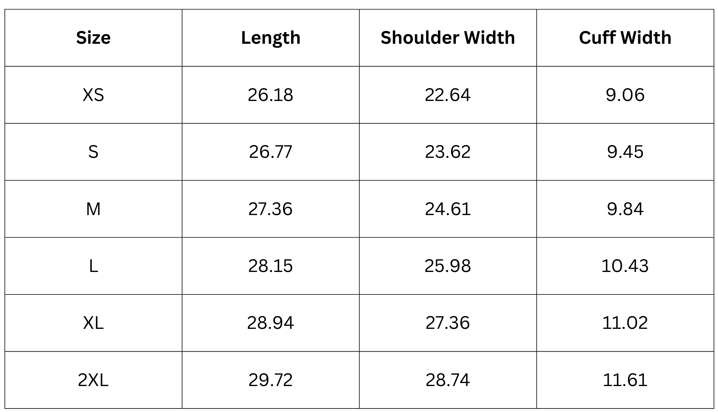 Size Chart: ( Inches )
