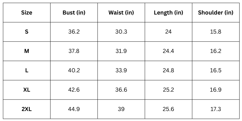 Size Chart (Inches):