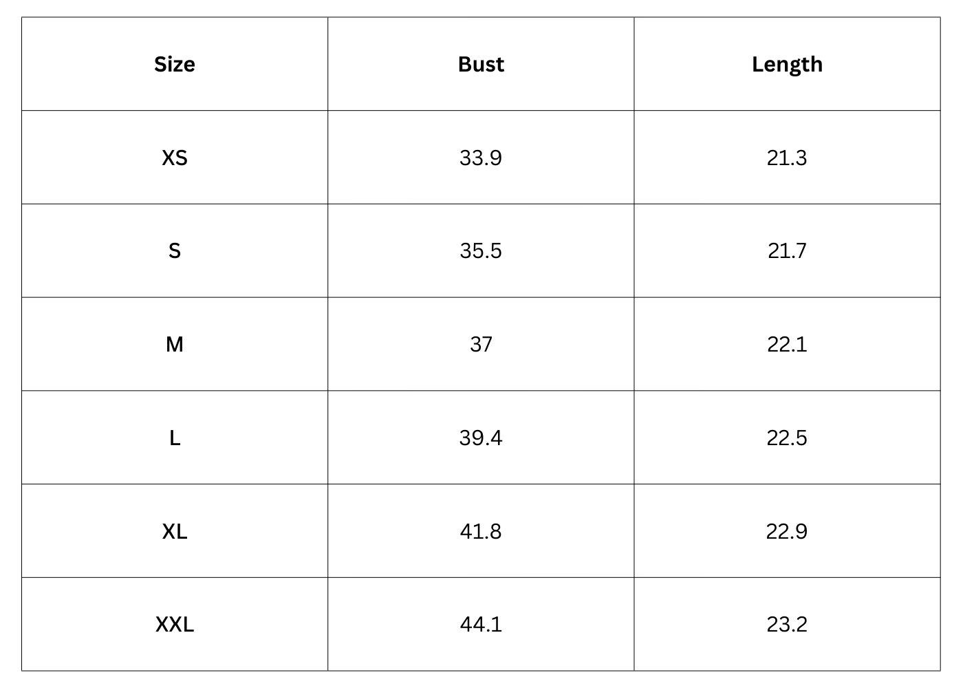 Size Chart(inch):