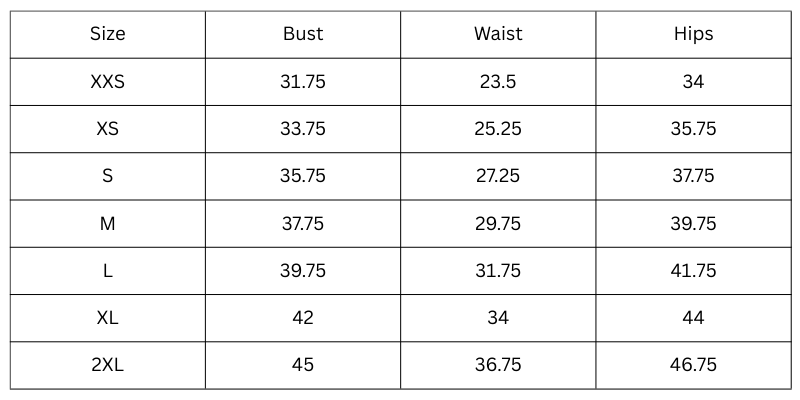Size Chart (Inches):
