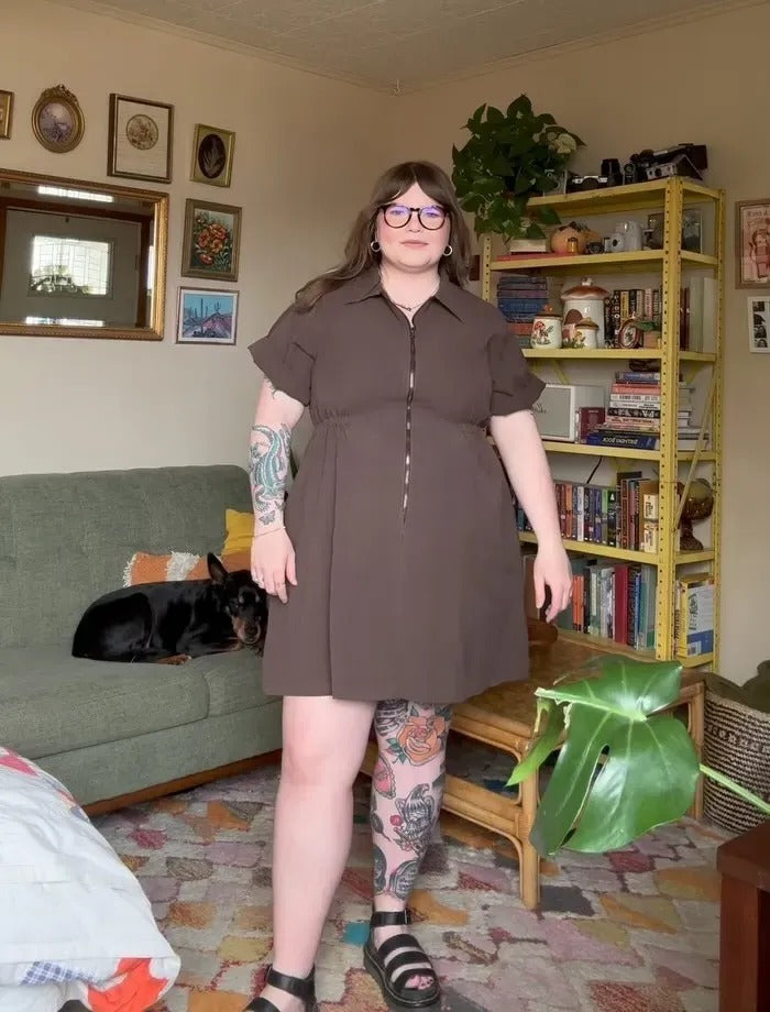 The Utility Cinched Zip Dress combines style and functionality for a versatile wardrobe addition. Featuring a front zipper for easy wear, a cinched waistline for a flattering shape, and oversized sleeves for comfort. The oversized skirt adds a flowy touch, while the giant pockets offer practicality. Made from durable yet soft cotton canvas, it’s pre-washed and pre-shrunk for lasting comfort and fit. Ideal for any occasion.