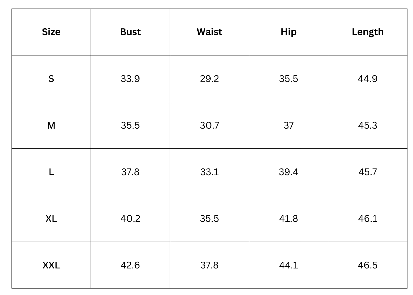 Size Chart(inch):